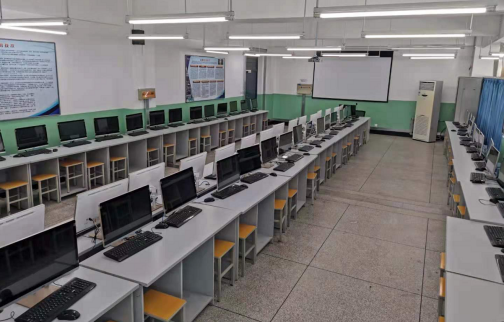 实验室面积近130平方米,设备价值100万,高性能服务器5台,学生终端66台,能够满足60名学生同时上机的需求。实验室局域网与学校主干网连接,统一安装多媒体教学管理软件,实现了屏幕广播、作业下发、作业上交、远程开机关机等功能。同时教学管理软件采用了虚拟化技术,实现了冗余功能,并且软件管理端通过创建操作系统模板实现快速部署学生机。