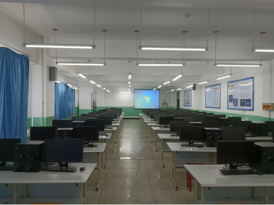 实验室面积近170平方米,总值近50万,主要配备高性能微机67台,并有与之配套的交换机连成局域网,拥有现代化的多媒体设备,包括投影仪和无线扩音设备,都配有空调,为学生提供良好的学习环境;安装有Visual C++、Eclipse、Visual Studio、Android Studio、SQL Server数据库等各种应用软件,支持C++、Java、C#、Android、iOS等编程语言的学习。