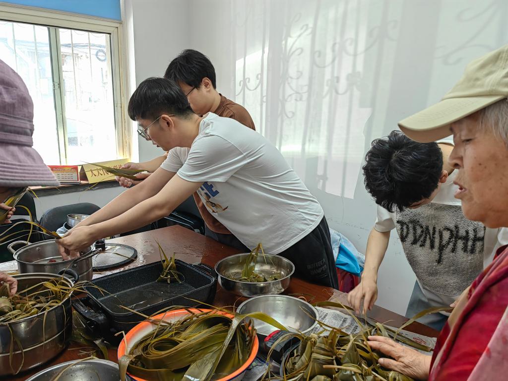 研究生党支部联合鑫诚园社区,于6月4日下午开展了“端午情浓,社区同乐”主题的包粽子活动。此次活动旨在进一步弘扬和传承中国传统文化,同时加强大学生与社区居民之间的互动交流。