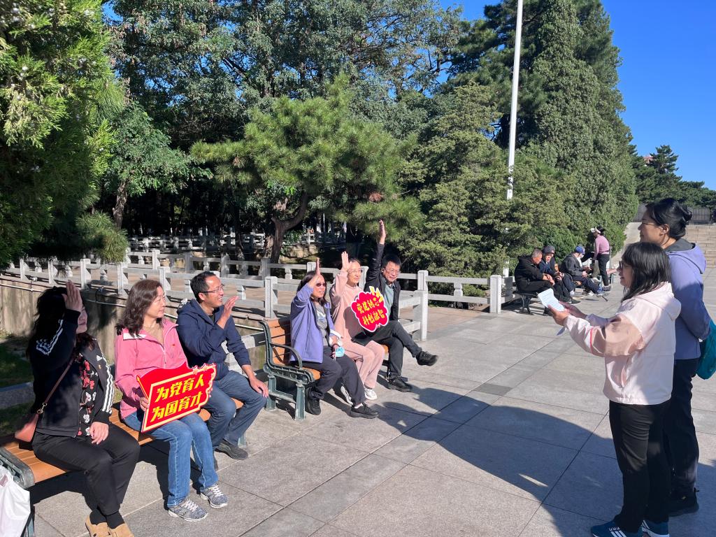 沿着习近平总书记考察的足迹,党员们来到东湖森林公园。党员们漫步在公园步道上,感受着锦州“山在城中、城在林中、水在绿中、人在画中”的良好生态,沉浸式体验锦州人民的幸福生活,更加深刻理解习近平总书记考察时所说的“我们对东北振兴充满信心”。随后,在东湖文化广场党员同志们齐唱《歌唱祖国》,用嘹亮的歌声,庆祝中华人民共和国成立75周年。