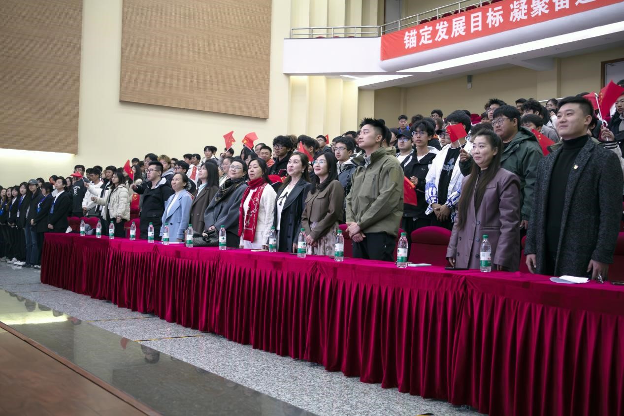 院长王亚君、副院长于玲以及师生代表共200余人现场观看。在活动伊始,王亚君代表学院对锦州市音乐家协会的老师们表示欢迎,并在讲话中指出,要弘扬中华美育精神,通过“音乐+思政”的创新形式,让家国情怀在旋律中流淌,让理想信念在节拍中扎根。