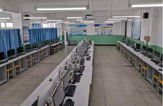 实验室面积近130平方米,设备价值100万,高性能服务器5台,学生终端66台,能够满足60名学生同时上机的需求。实验室局域网与学校主干网连接,统一安装多媒体教学管理软件,实现了屏幕广播、作业下发、作业上交、远程开机关机等功能。同时教学管理软件采用了虚拟化技术,实现了冗余功能,并且软件管理端通过创建操作系统模板实现快速部署学生机。