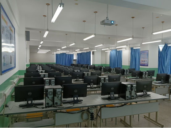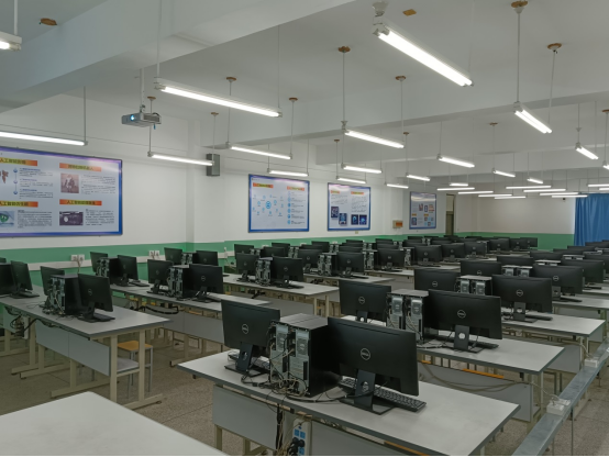 实验室面积近170平方米,总值近50万,主要配备高性能微机67台,并有与之配套的交换机连成局域网,拥有现代化的多媒体设备,包括投影仪和无线扩音设备,都配有空调,为学生提供良好的学习环境;安装有Visual C++、Eclipse、Visual Studio、Android Studio、SQL Server数据库等各种应用软件,支持C++、Java、C#、Android、iOS等编程语言的学习。
