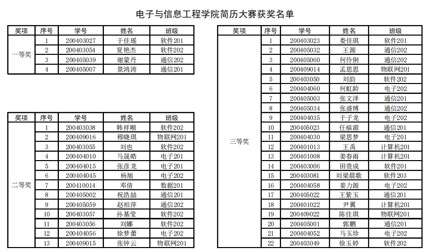 党委副书记、副院长杜君老师,2020级辅导员王军浩老师,2020级班主任老师从用人单位的角度出发,就简历篇幅、简历内容、简历细节等方面对参赛选手的简历进行遴选和评定。根据评委老师的评分结果,本次简历大赛的获奖结果如下: