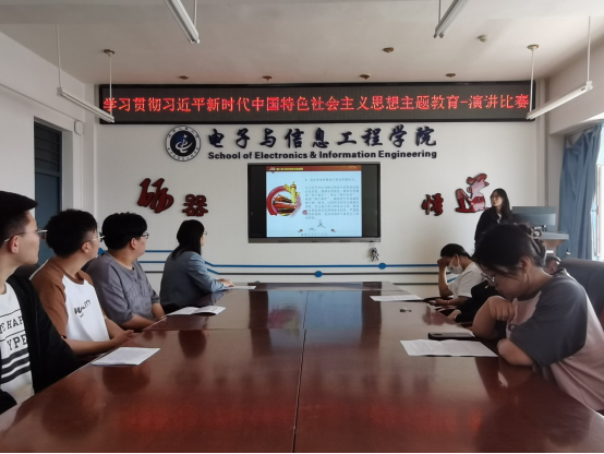 5月24日下午,电信学院学生党支部在五号教学楼509会议室举办学习贯彻习近平新时代中国特色社会主义思想主题教育的演讲比赛。学生党支部书记陈爽老师以及党支部学生党员参与了此次活动。